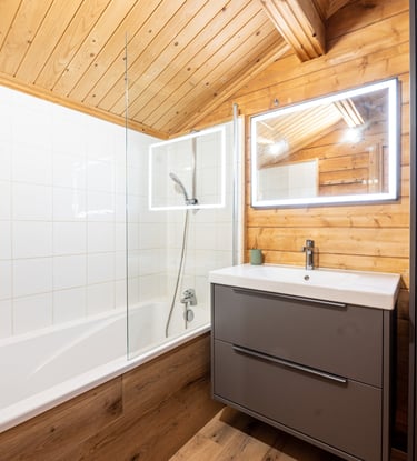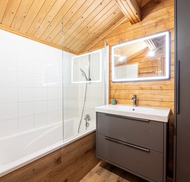 Retrouvez une nouvelle fois à l'étage, une salle de bain avec cette fois-ci une baignoire. Au deuxième étage, le Chalet des Cimes bénéficie également d'un WC séparé