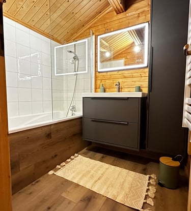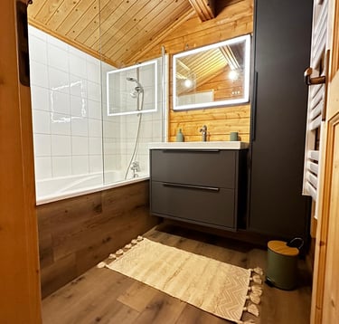 Retrouvez une nouvelle fois à l'étage, une salle de bain avec cette fois-ci une baignoire. Au deuxième étage, le Chalet des Cimes bénéficie également d'un WC séparé
